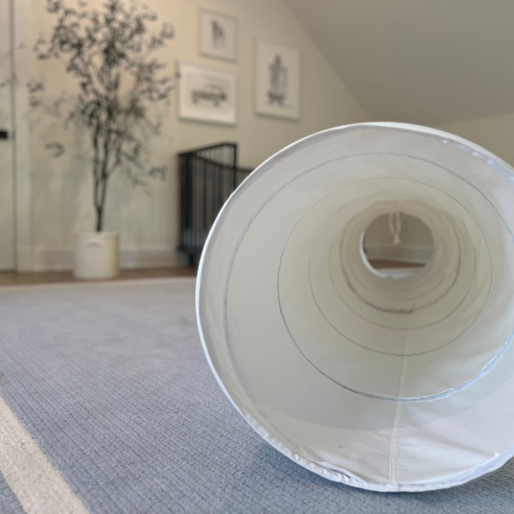 Let's start with a simple one. Once your baby crawls inside, give your cotton play tunnel a good shake. Babies love this thrill. You can roll, shake, or lightly rock the eco-friendly play tunnel from side to side.