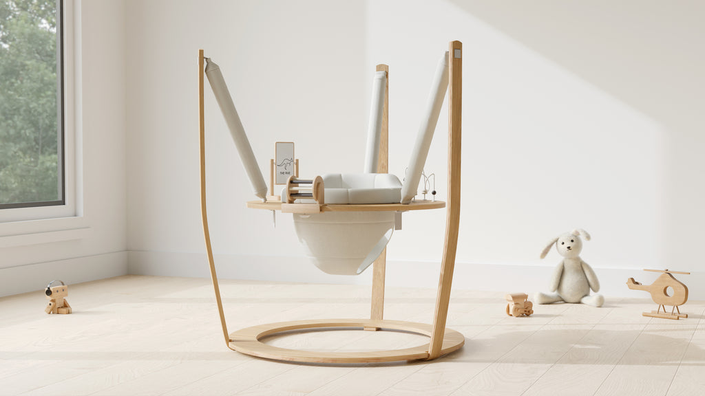 Controlled Movement: Unlike many traditional jumpers, The Rue is designed to limit overstimulation and encourage controlled, intentional movement, aligning with the Montessori emphasis on purposeful activity.