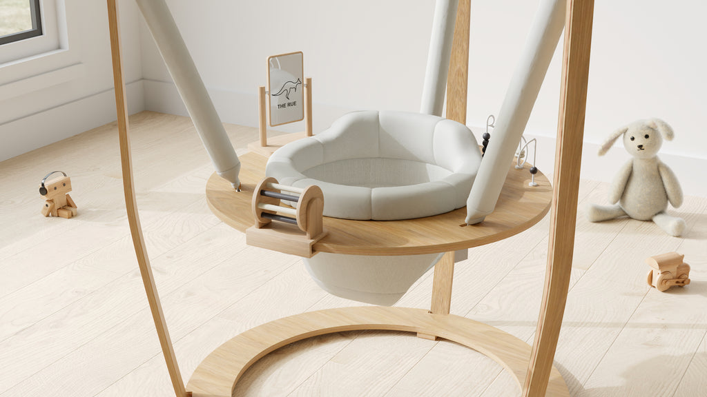 With many baby products flooding the market, making the right choice can often seem overwhelming. The Rue wooden modern baby jumper isn’t just another product. It's a blend of functionality and art. A wooden baby jumperoo that doesn’t scream "baby" but subtly introduces one of your baby essentials into your living space.
